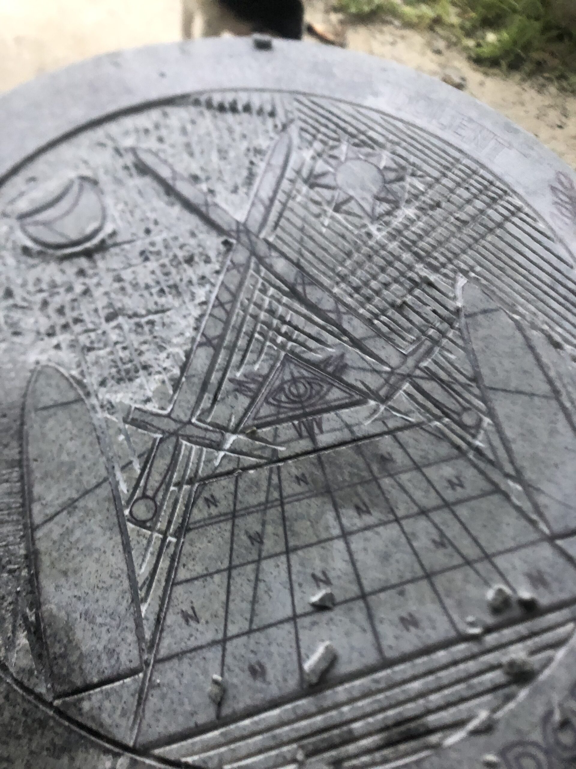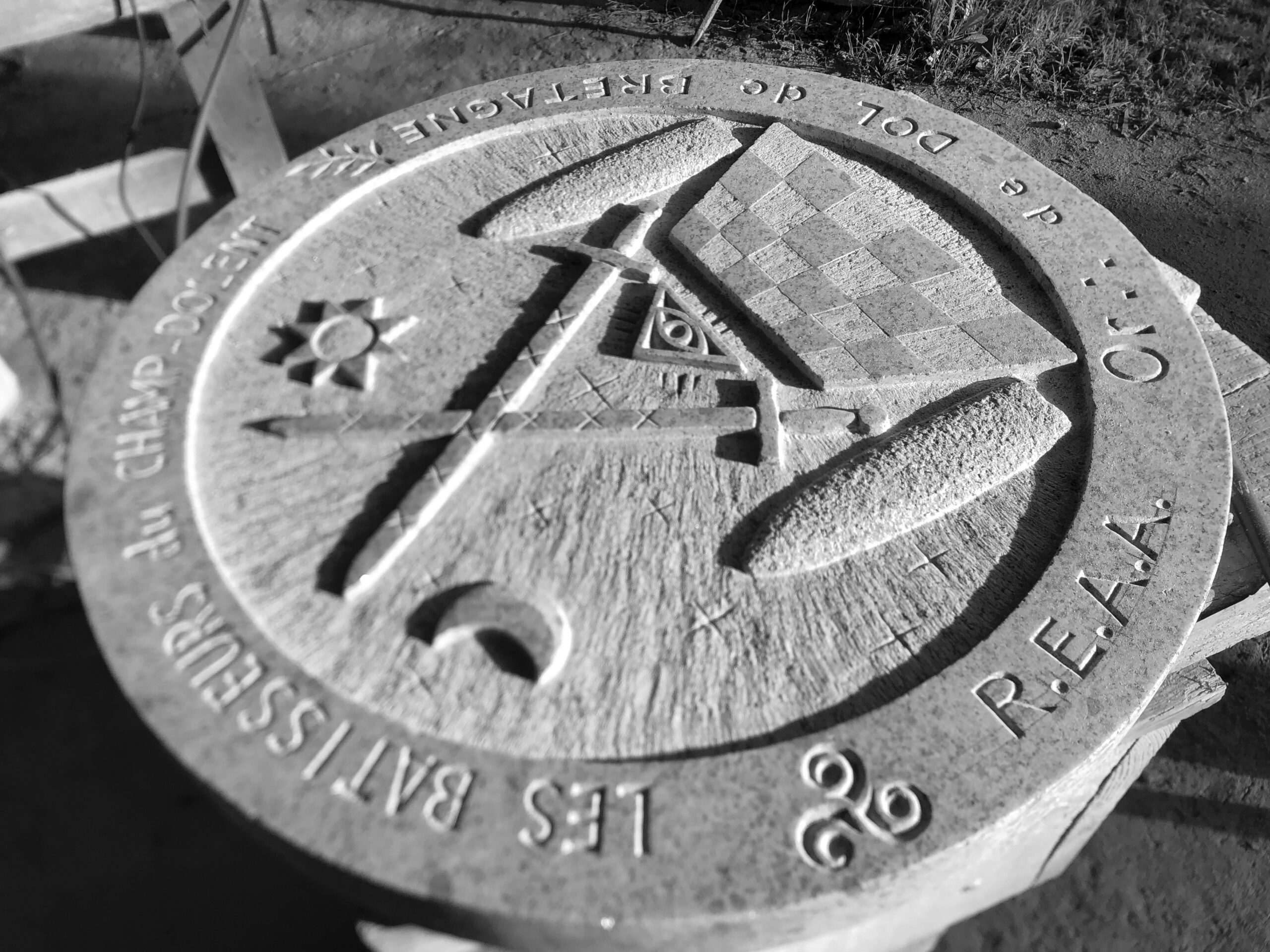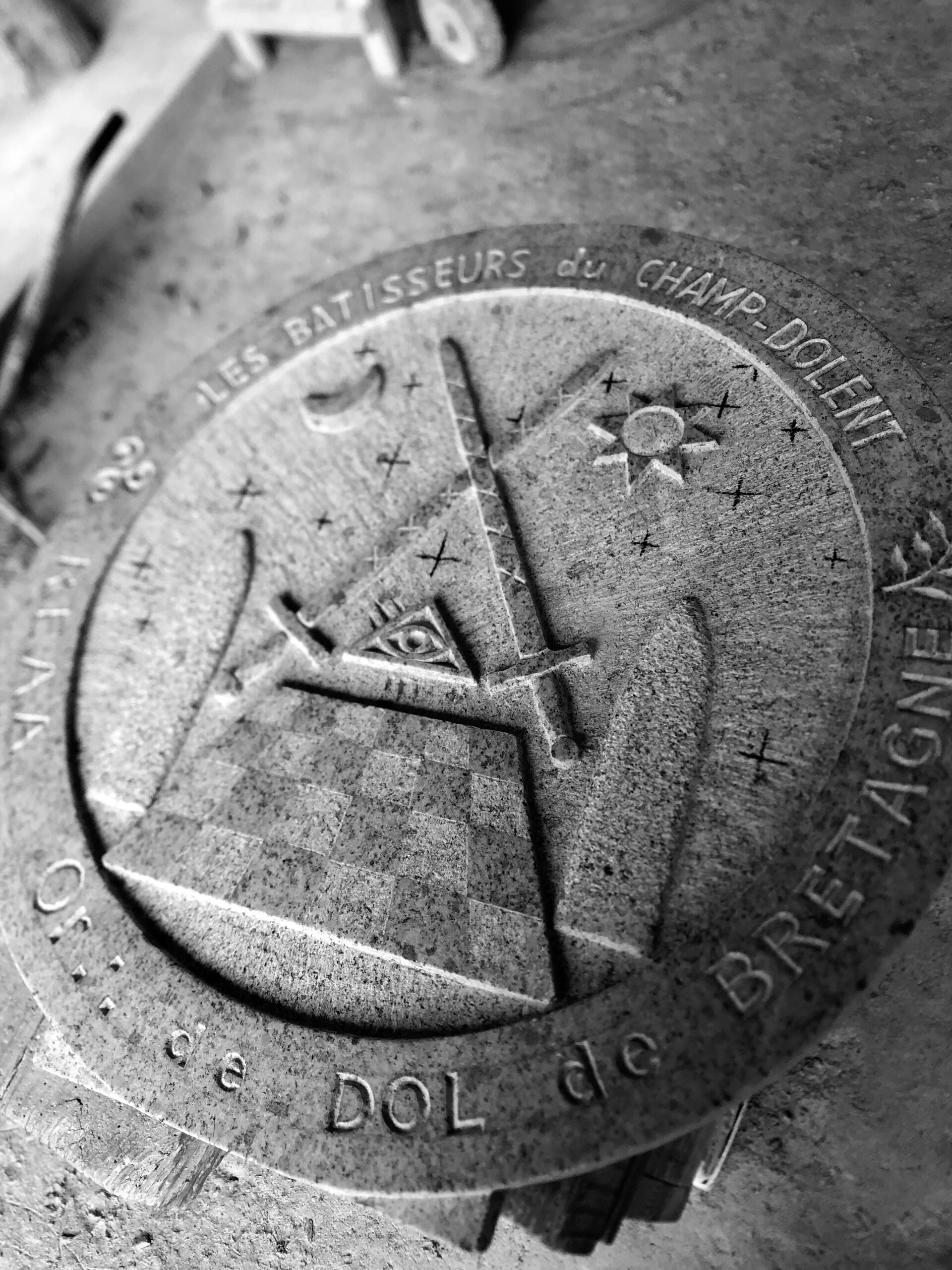 Gravure d'un blason en creux dans un granite de Huelgoat