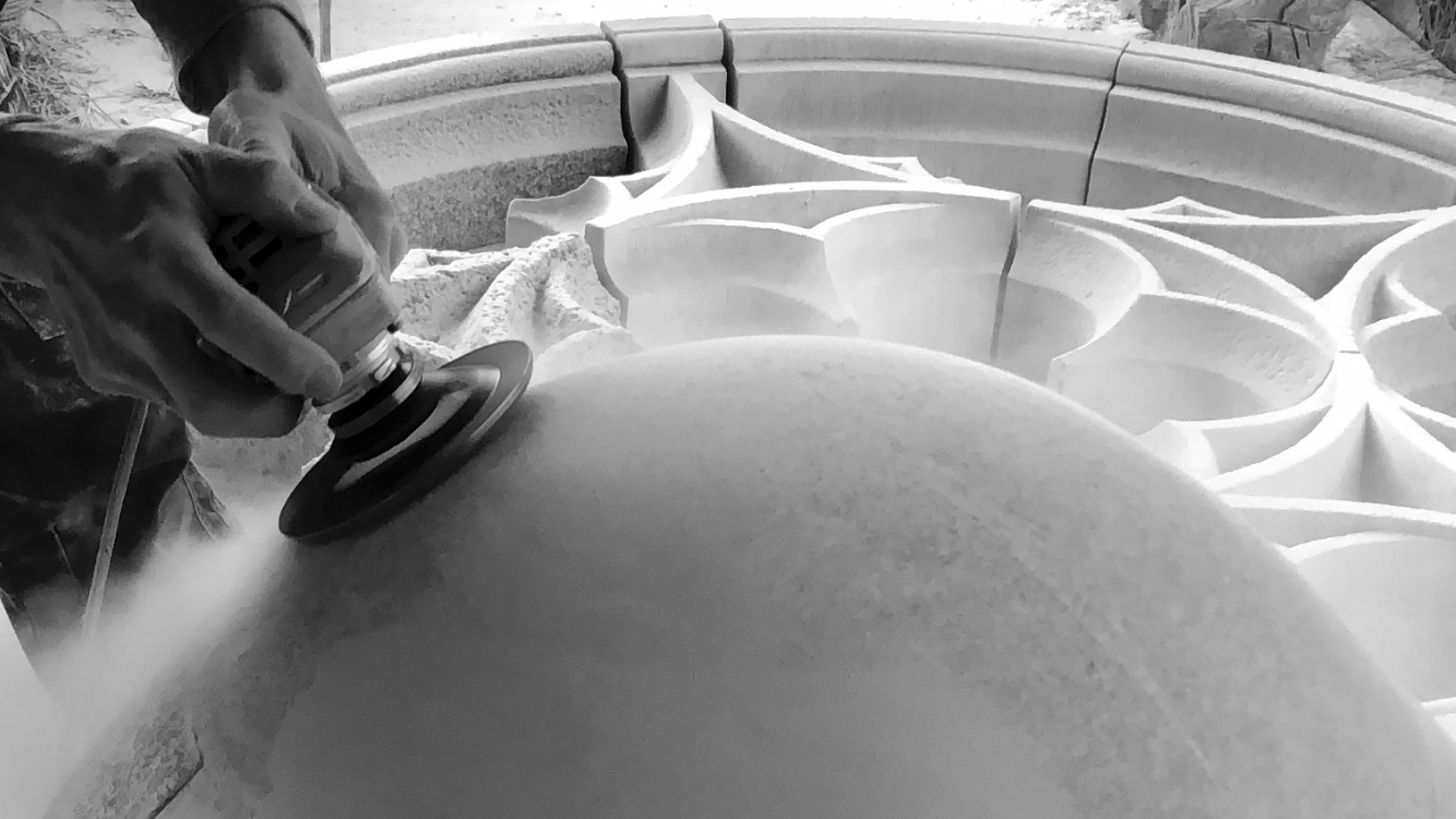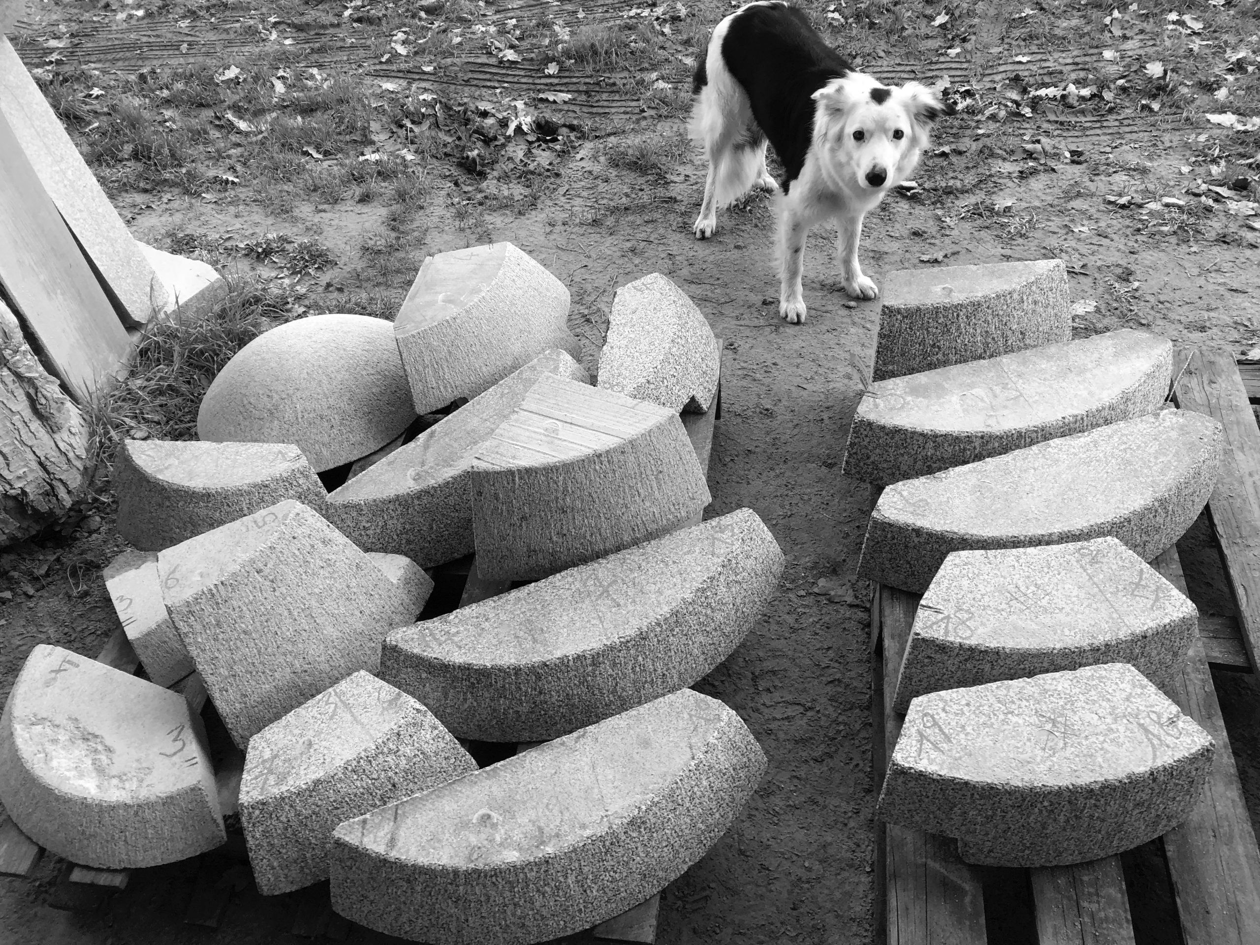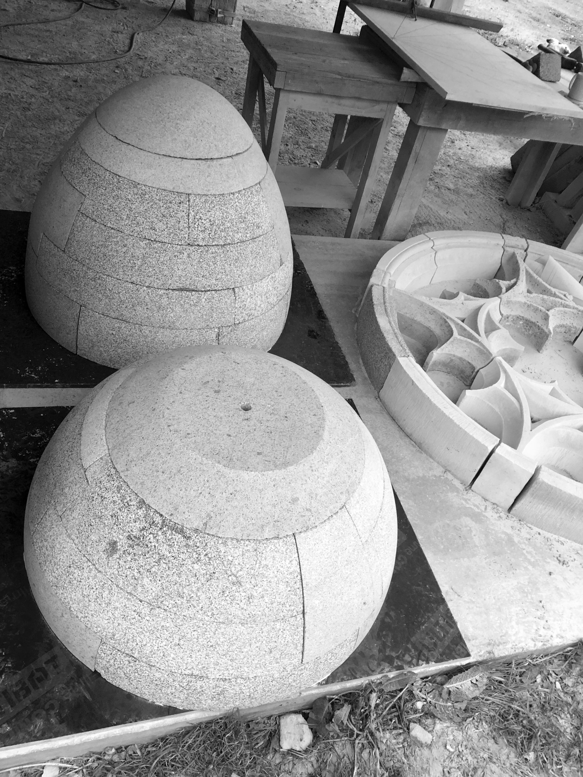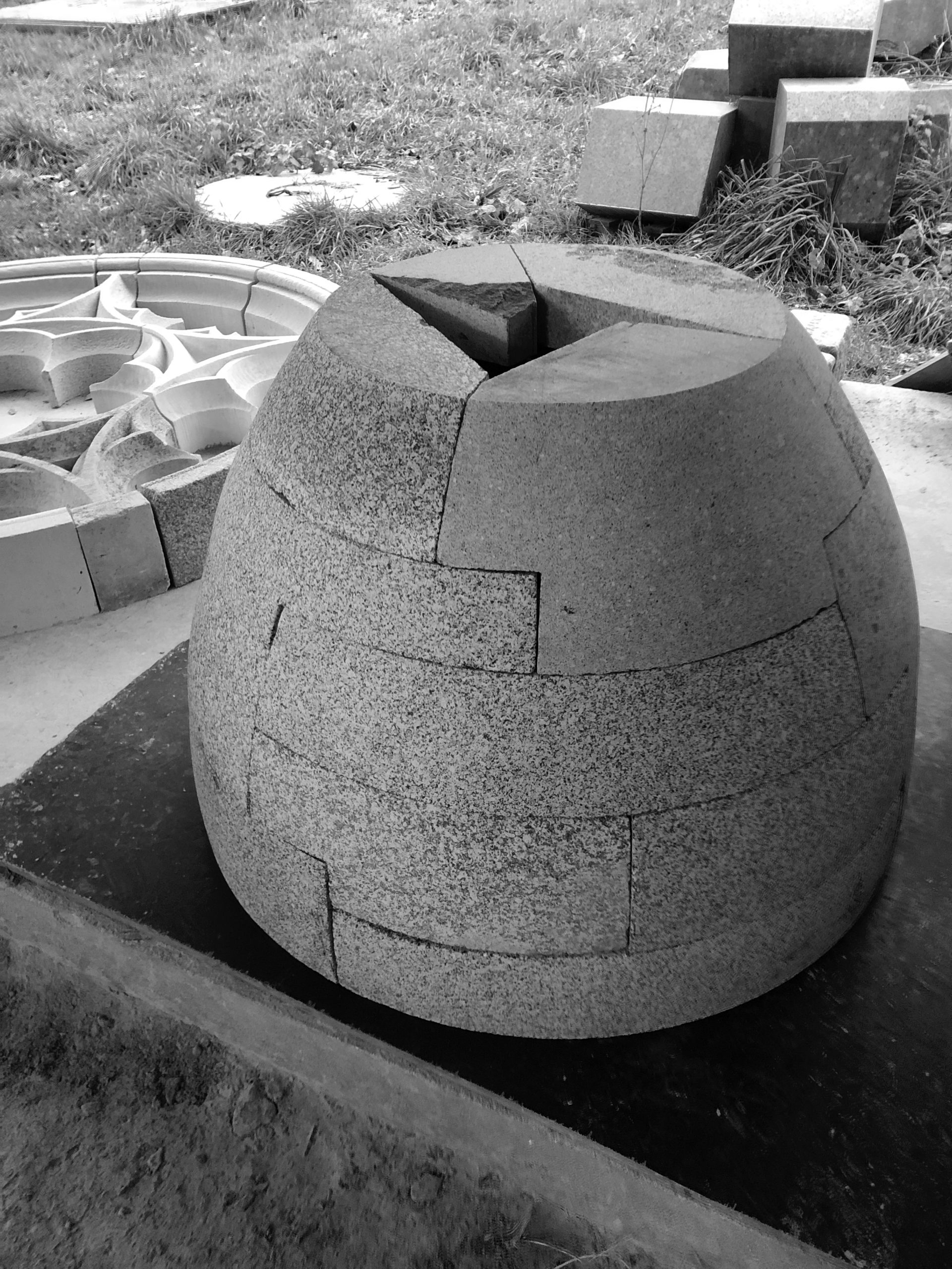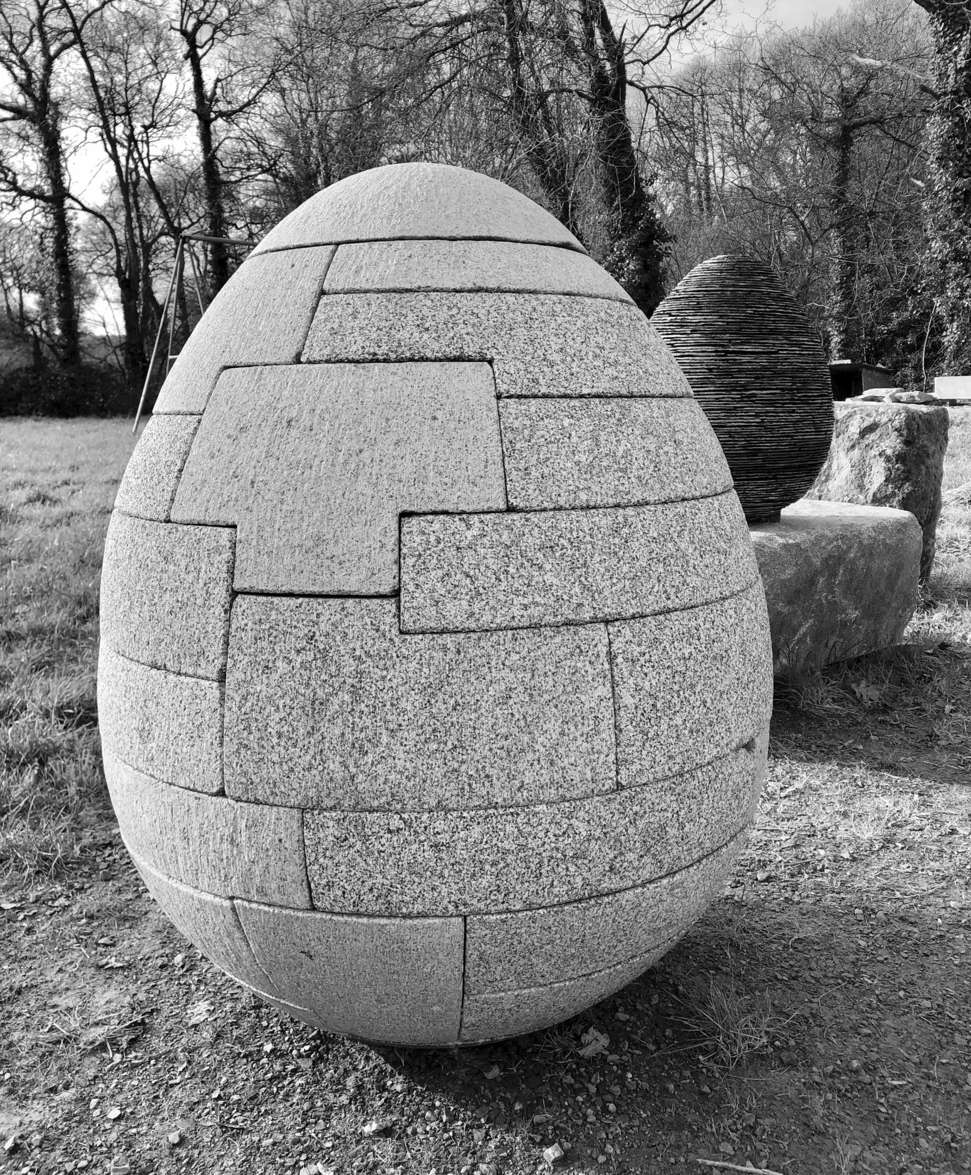 Création d'un Oeuf de 120cm en Granite Breton. Utilisation de chutes de Pierres de différentes couleurs et différentes densités